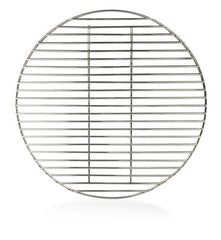 Denne grillrist af høj kvalitet er fremstillet af rustfrit stål. Med en diameter på 34 cm giver den rigelig plads til at grille pølser, grøntsagsspyd eller kød. Afstanden på 0,9 cm mellem hver stang gør det muligt at grille selv små stykker kød. To ekstra